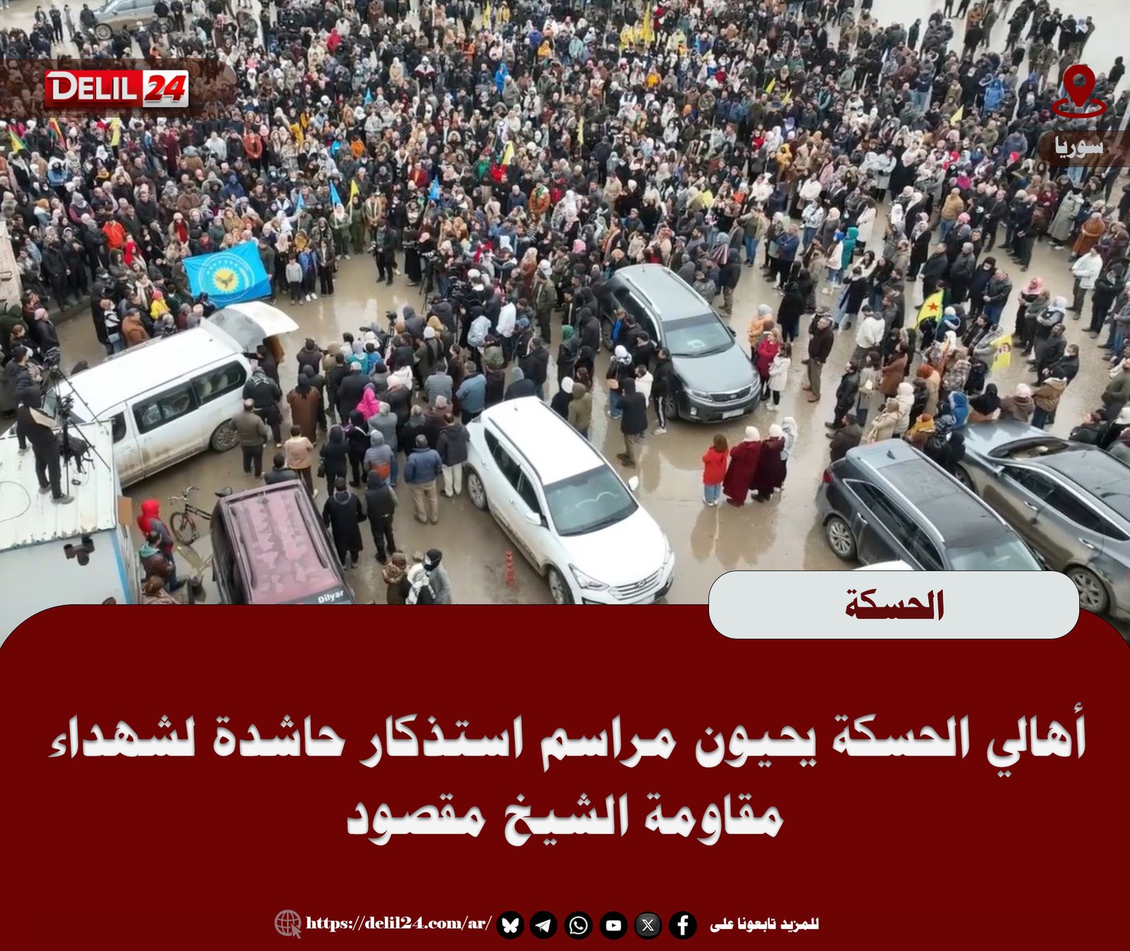 نظّم أهالي مدينة الحسكة، بمختلف مكوّناتهم، إلى جانب أعضاء المؤسسات المدنية والإدارية، مراسم استذكار حاشدة أمام دوّار الحمامة وسط المدينة، تخليداً لأرواح شهداء مقاومة الشيخ مقصود.