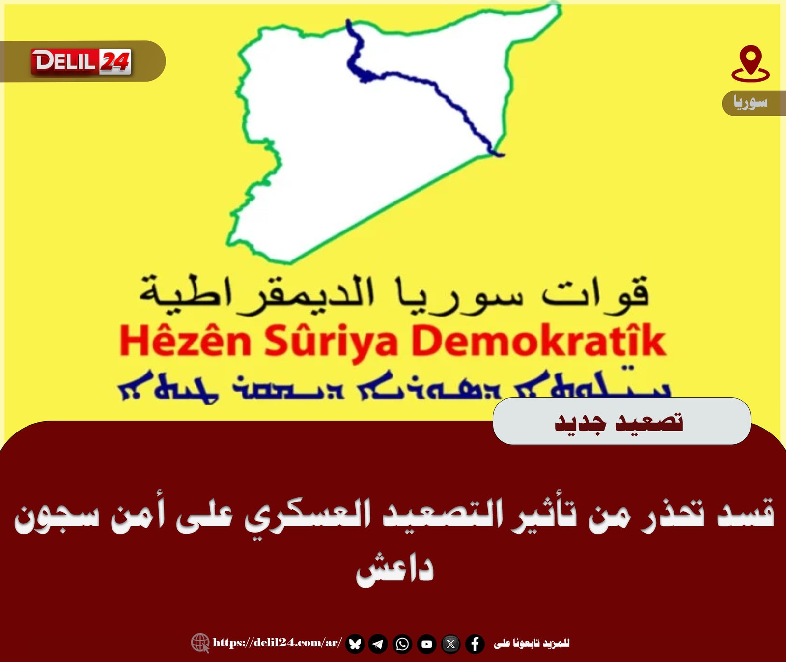 وأصدر المركز الإعلامي لقوات سوريا الديمقراطية بياناً نشره على موقعه الرسمي، أكد فيه أن خلايا التنظيم تحاول استغلال التصعيد العسكري لشن هجمات تستهدف السجون.