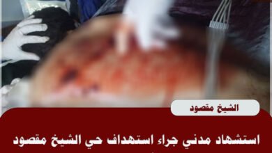 استشهاد مدني جراء استهداف حي الشيخ مقصود بطائرة مسيرة