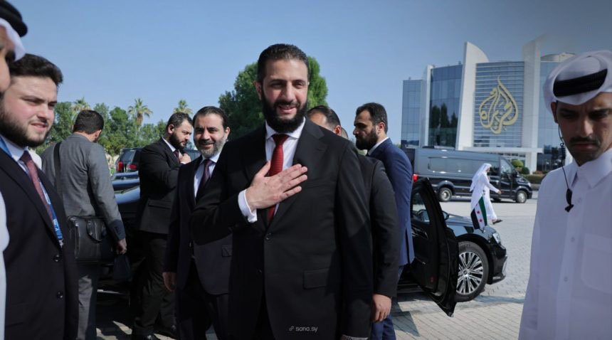 Al-Sharaa visits Al Jazeera headquarters in Doha
