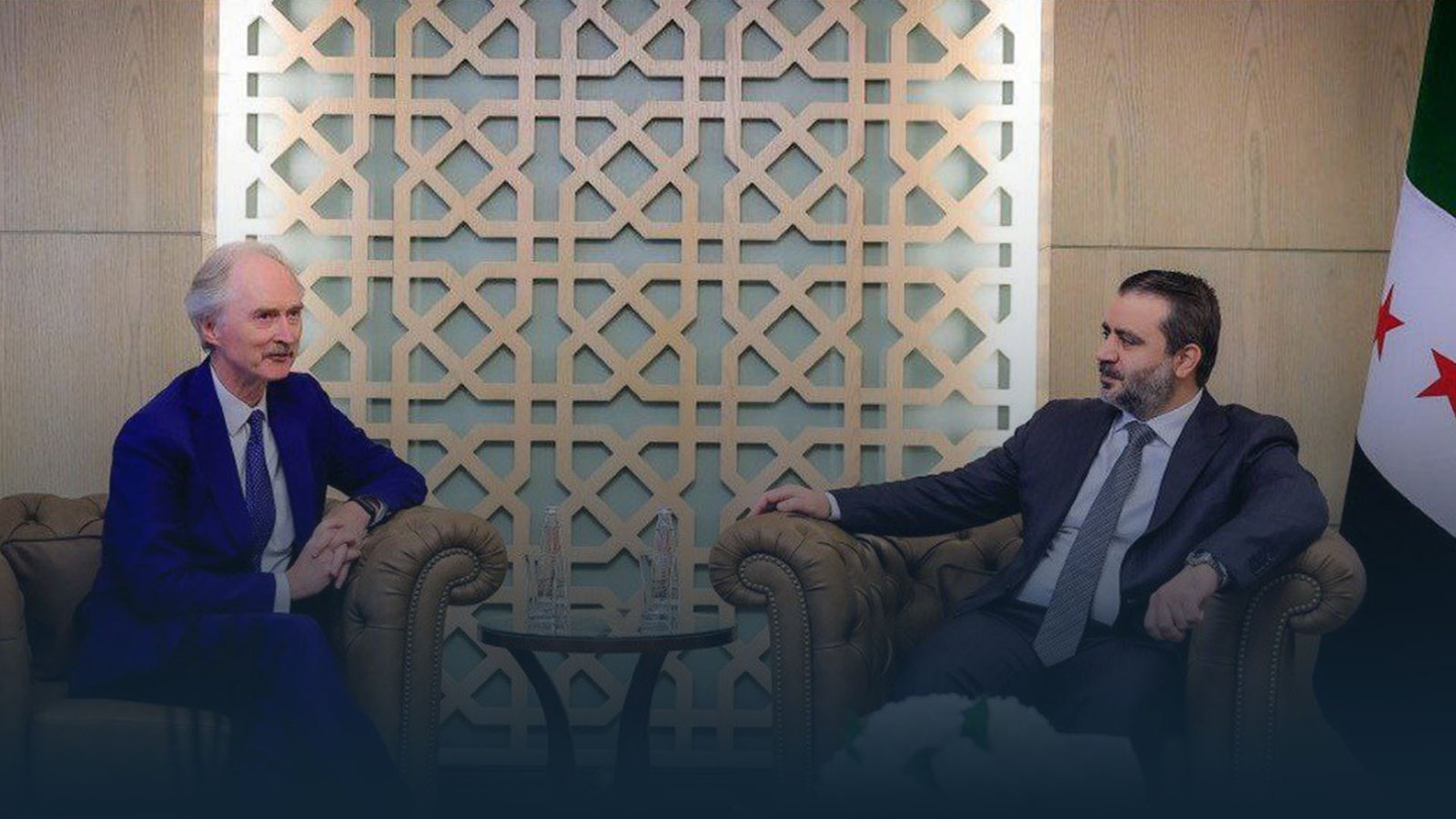 Wezîrê Derve Esed Hesen El-Şîbanî îro li Şamê pêşwazî li Nûnerê Taybet ê Neteweyên Yekbûyî yê Sûriyê Geir Pedersen û şandeya pê re kir.